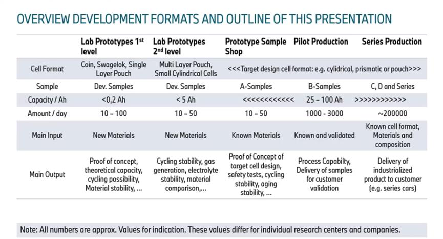 A样产品主要验证材料性能和电芯设计,B样阶段主要在验证制造可行性,确定工艺,最后才是投入量产产品。可以看出,这基本上和电池企业内部研发阶段划分和决策考虑都是一致的。