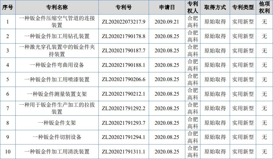 截至公转书签署日,公司已取得授权实用新型专利40项。公司是安徽省认定企业技术中心、合肥市科技小巨人培育企业、安徽省专精特新中小企业。