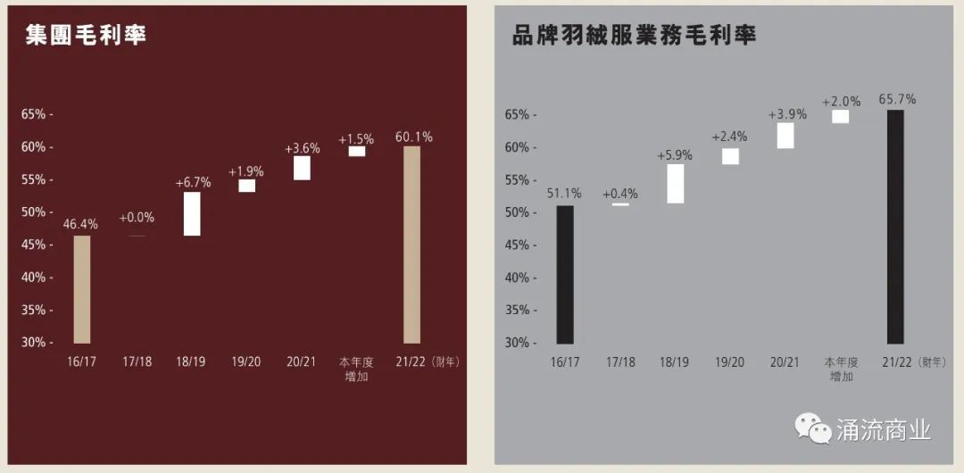 逐渐地,加拿大鹅的品牌护城河形成,这意味着更自由的定价权、可以提高价格以减轻成本压力,甚至可以以此为契机改善毛利率。