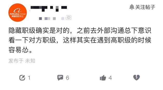 一位阿里员工就表示,“之前在内部跨部门协作时,如果看到对方是‘高P’,沟通时会有所顾忌,甚至“能绕开就绕开”,现在隐藏职级后,会更敢于沟通一点。”