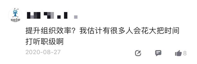 但是,一个组织里处处是沟通,职级真能藏得住吗?穆胜咨询也发现了社交平台上一些有意思的评价。说白了,只要有沟通,就有信息传递,只要有信息传递,各种信息碎片还是可以拼凑出一张“权力格局图”。