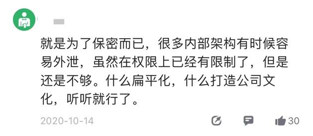 互联网公司的组织架构直接体现了他们在业务上的排兵布阵,被视为一项机密。有心人完全可以从职级与汇报线关系顺藤摸瓜,还原出一个企业的组织架构。因此,隐藏职级能进一步防止内部架构的外泄,做好公司内部的保密工作。