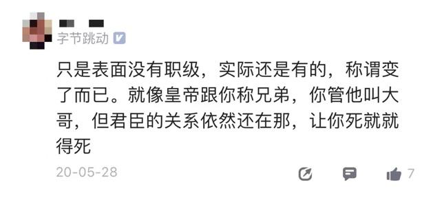 要说哪个大厂最弱化职级,字节跳动当属名列前茅。字节自诞生起就号称不提倡阶级概念,所以内部职级严格保密,同事之间互称同学,一系列操作把弱化职级贯彻得很彻底。