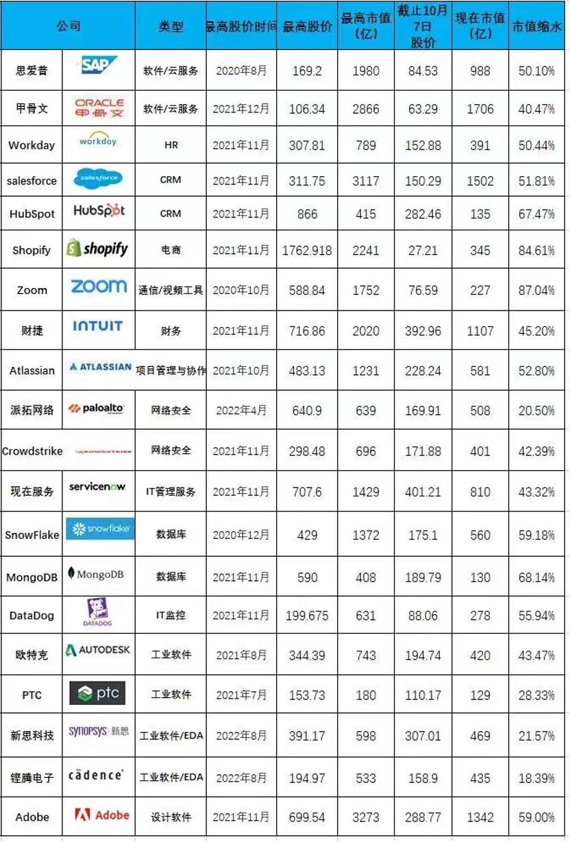SaaS巨头的并购热情,大多为了在已有的基础上,巩固技术的护城河,进一步提供生态外延的动力,维持行业地位。但即便市值回落,salesforce现在仍有1600多亿美金身价,Adobe也超过了1400亿的市值。