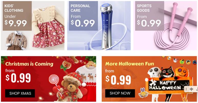 从主页看,拼多多偏向小物件售卖,和国内的商品模式一致,而SHEIN尽管涉及其它品类,但主打的还是女性服装。