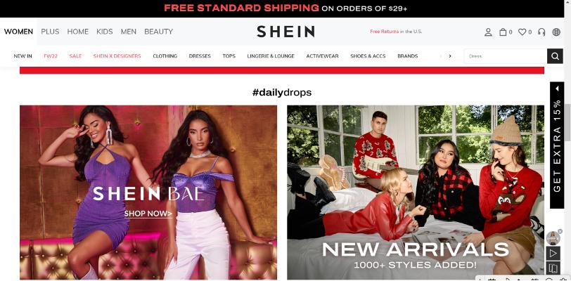 SHEIN网站主页
