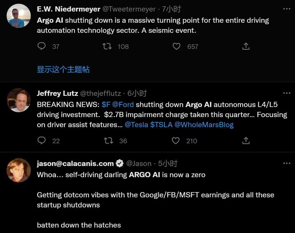 几年的热潮之后,各大车企和科技公司似乎已对自动驾驶的看法变得「现实」了,福特财报宣告了其重点投资的自动驾驶创业公司 Argo AI 走向终结,事发之后,社交网络上爆发了大量讨论: