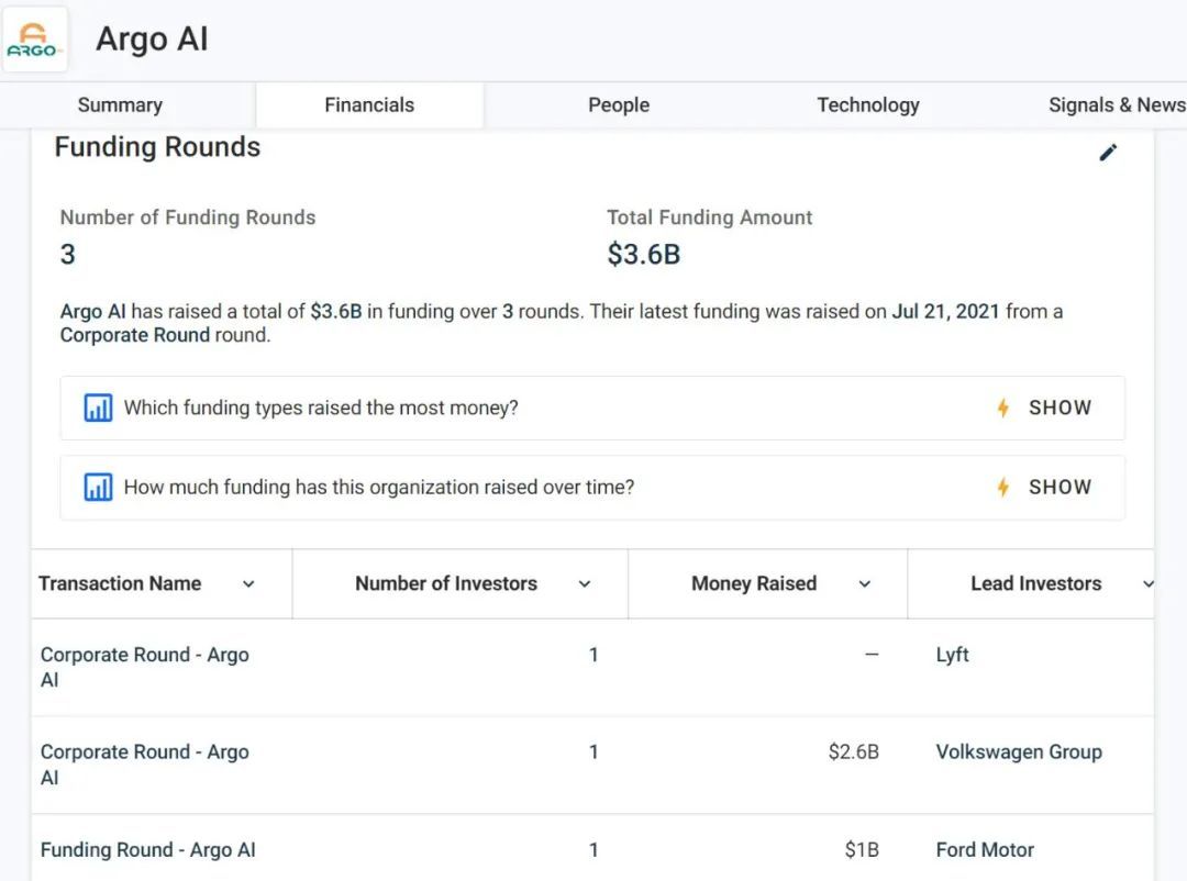 2021 年 7 月,Argo 又接受了 Lyft 数额未公布的投资,该公司最终的融资金额定格在 36 亿美元。