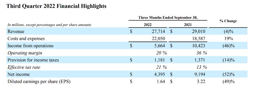 只看日活跃用户和月活跃用户的话,Q3这两项数据分别上涨了3%和2%,使得Meta的总用户数达到了历史新高。营收277亿美元虽然同比下降了4%,但也高于预期。但Q3 Meta的支出飙升了19%,使得利润率同比暴跌了52%。