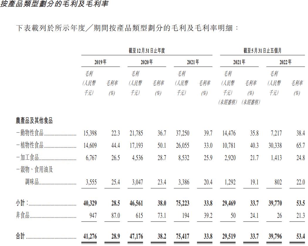 若按客户类型划分,截至2021年12月31日止的报告期内,幼儿园及教育机构以及餐饮服务供应商毛利占最大份额;而截至2022年5月31日止五个月,向临时及应急服务客户的销售额佔毛利的最大份额。