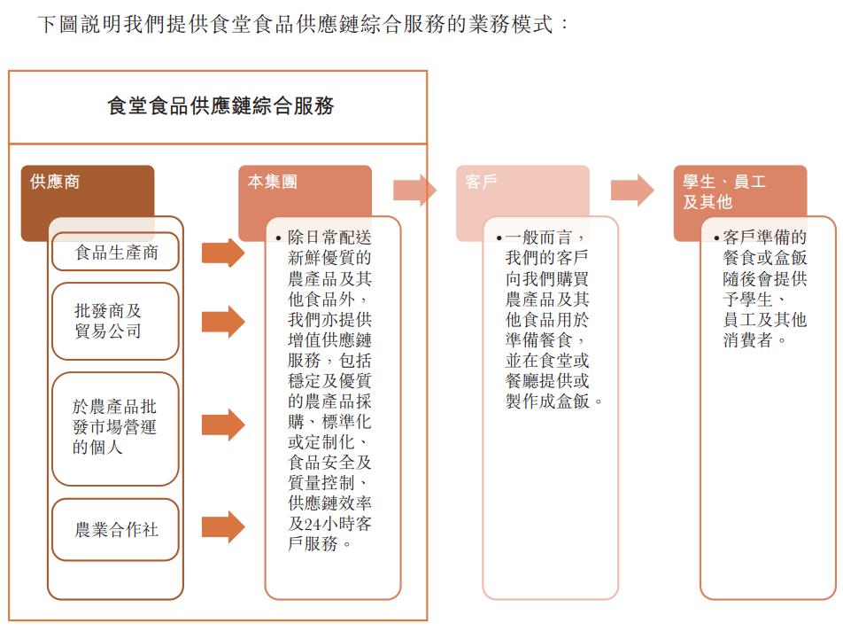 乓乓响的业务模式,是通过采购农副产品及食品,向食堂、餐厅提供,或制作成盒饭予学生、员工及其他消费者。招股书显示,乓乓响提供的农产品及其他食品组合包括超过4100款。