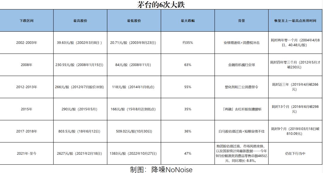 历史进程中的茅台与6次暴跌