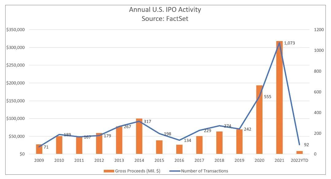 2009至今美国IPO活跃情况,图片来自于Factset