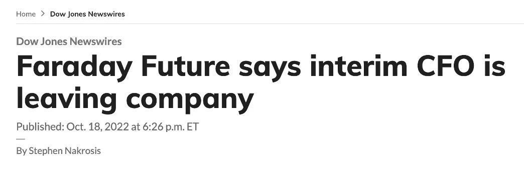 除了金融科技外,正在猛烈调整的新能源和自动驾驶领域也传出了CFO离职的消息。本周三,法拉第未来宣布其临时CFO Becky Roof已经辞职并立即生效,同时表示公司已经通过裁员和减薪以换取股权、削减成本和节约现金。