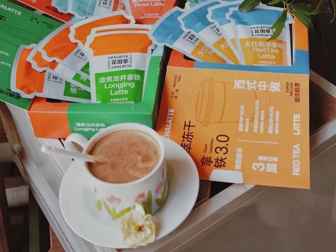 比如,鹰集推出小茉莉茶咖、小乌龙茶咖、小玫瑰茶咖等,花田萃推出天香茉莉拿铁、蜜桃乌龙拿铁、生椰乌龙拿铁、清煮龙井拿铁等,在电商平台一直热销。