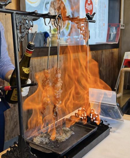 羊肉串、牛肉串、普通的猪肉大家经常吃,都知道卖多少钱,但驴肉串、杂交野猪、泉水鱼别的地方吃不到,顾客心里并没有一个参照物,第一次吃觉得味道很好即使贵也会感觉钱花得值。