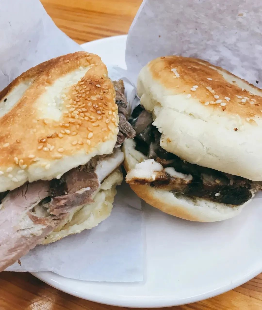 在北京通州,就有一家专门卖烧饼夹肉的老字号——西海子西园烧饼夹肉,开了有40多年,门店主打烧饼夹肘子肉,被人称为“京东一绝”“通州一绝”。