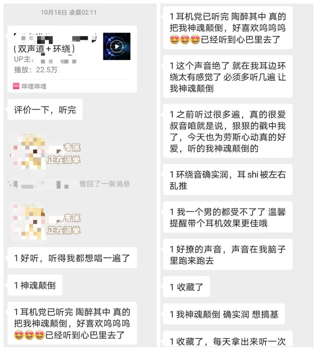 平时两人出手相当阔绰,时不时就在群里送礼物。所以每当她们出现时,群里就很热闹。有一天,KK在群里发了一首歌曲的视频链接,让群里的人听完说说感受。群里很快就被刷屏了,能看得出每个陪玩都竭尽所能地找出不同的形容词,以搏老板欢心。