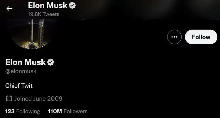 Chief Twit 是马斯克的 Twitter 新简介,长达半年多的收购战争后,「推特老板」终于成为了马斯克的新头衔。