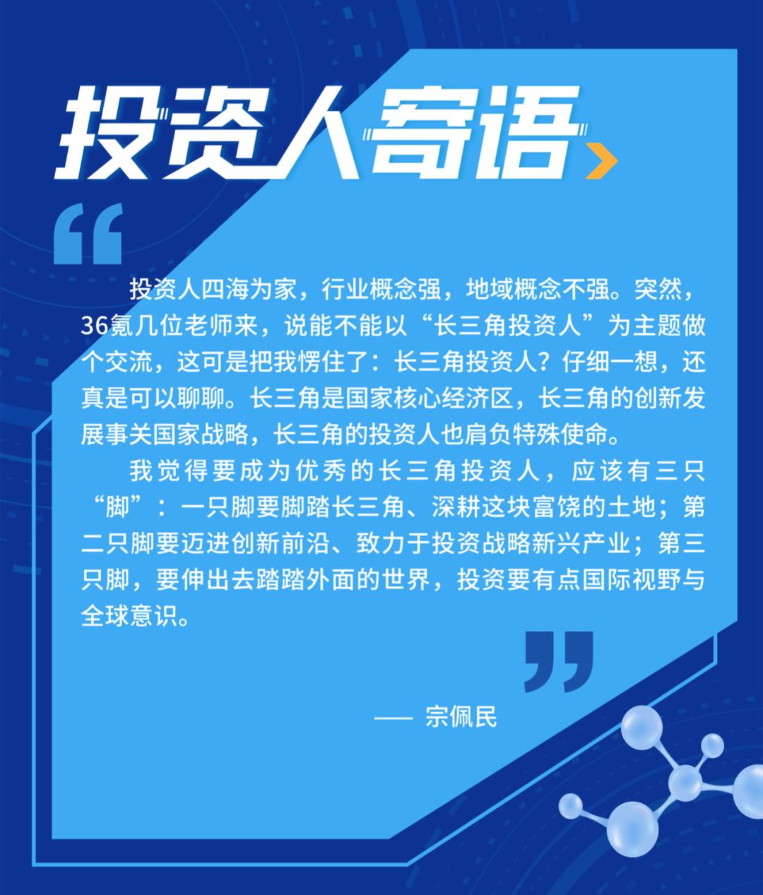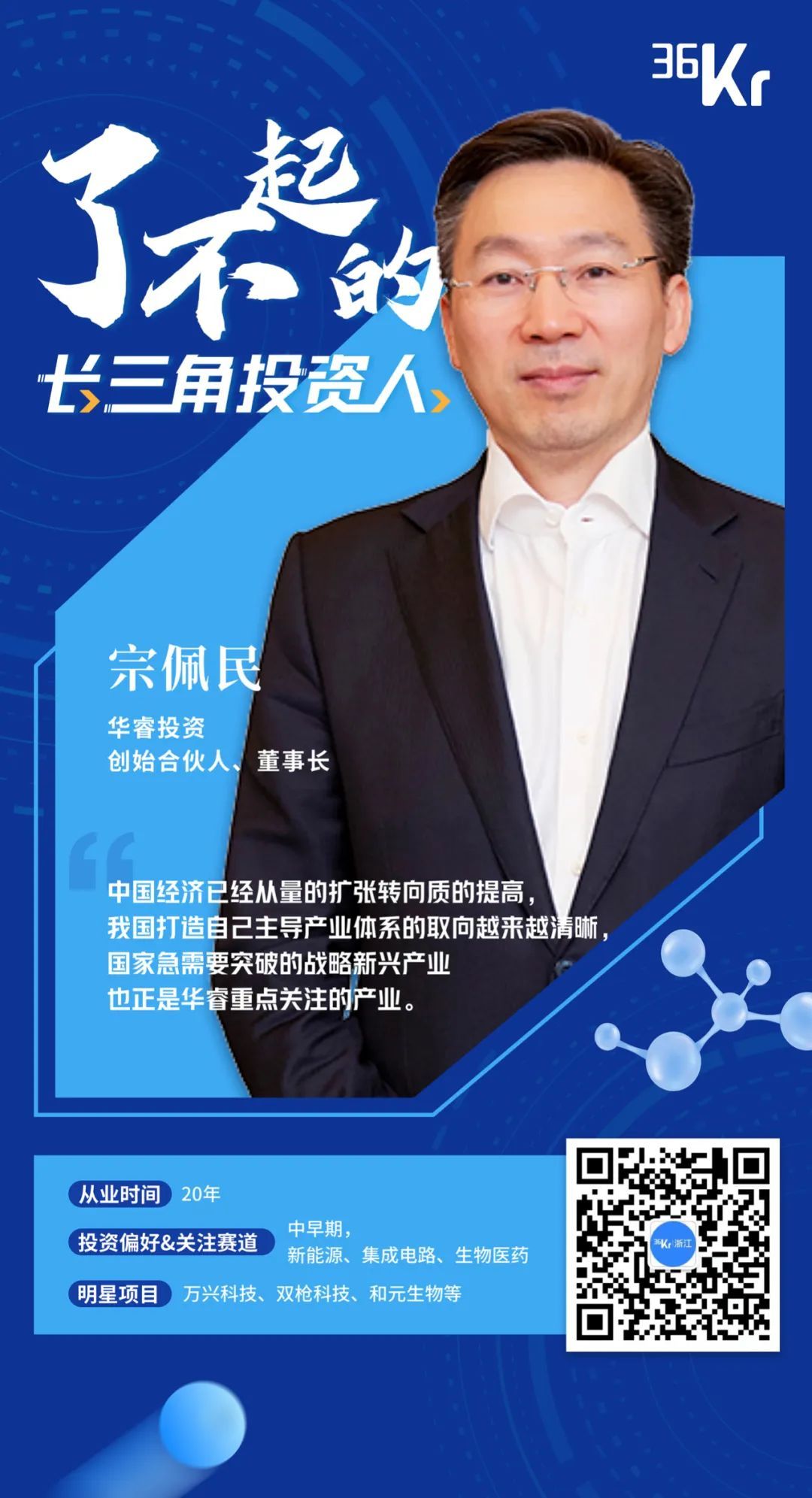 近日,36氪推出特别专栏「了不起的长三角投资人」第二期,与华睿投资董事长宗佩民深度畅聊,从市场格局、行业现状、投资逻辑切入,聊聊扎根新能源、集成电路、生物医药行业二十年的投资心得。