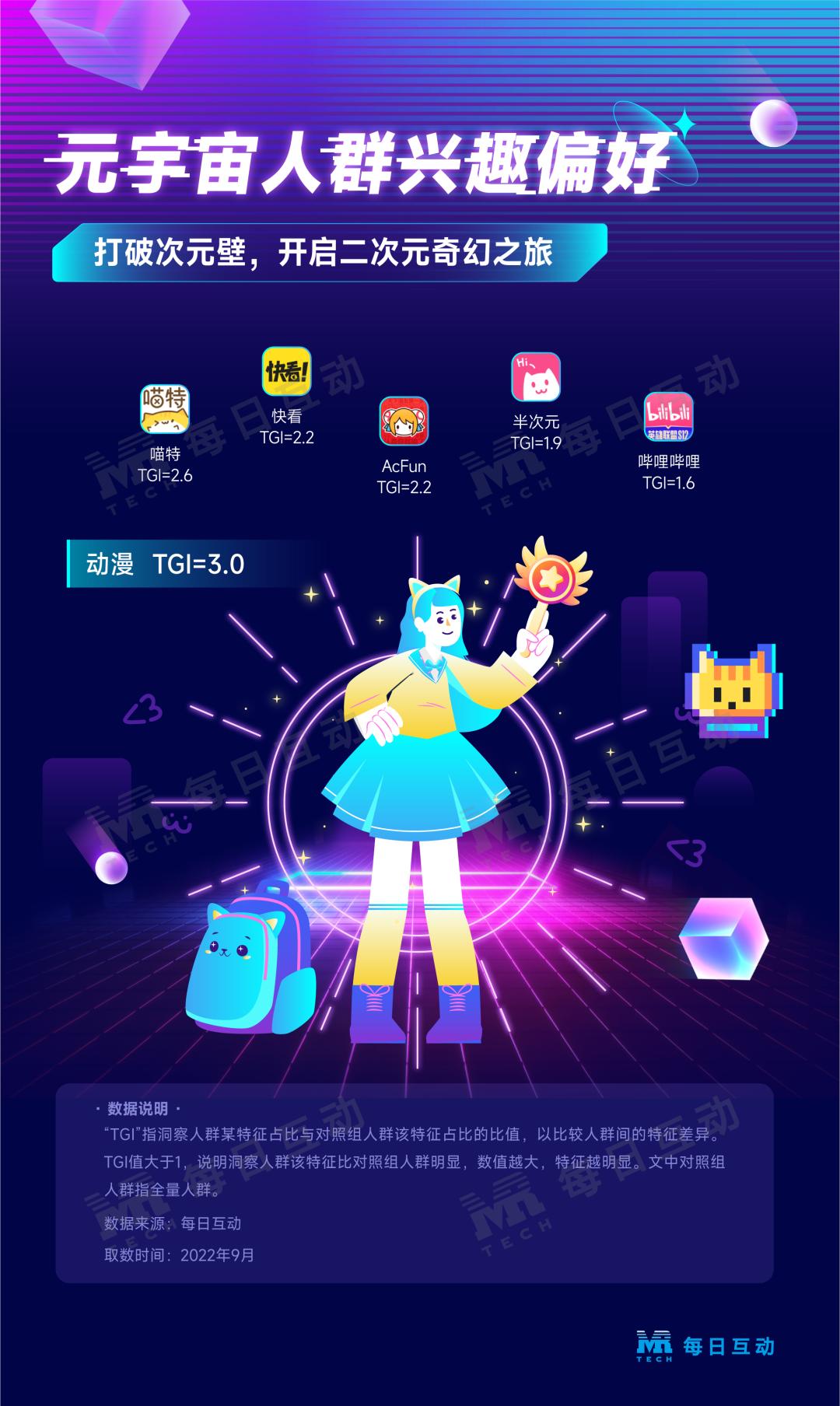 大数据显示,元住民对“动漫”的偏好值达3.0,他们对二次元的偏好程度是普通人群的3倍。二次元世界丰富的人物形象与故事,以及富媒体的素材,都为元宇宙的发展奠定了内容基础。像初音未来、洛天依等虚拟偶像的走红,也说明元宇宙技术能将二次元世界变得更加丰满,为大众谱写出更加曼妙的奇幻之旅。