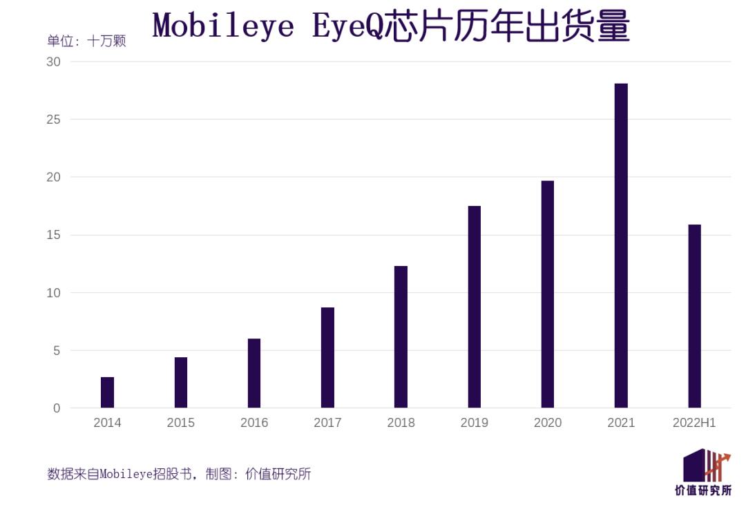 招股书数据显示,去年全年Mobileye共售出2810万颗EyeQ芯片,今年上半年的销售量也达到1590万颗,过去几年的出货量一直保持正增长。根据公开信息,目前全球有超过800款车型使用Mobileye出产的EyeQ芯片,其中包括宝马、奥迪、通用、大众和福特等头部车企。