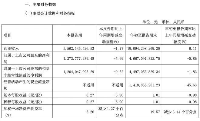 而从前三季度来看,虽然总营收达190.94亿元,同比增长6.11%,但净利润为46.67亿元,下降0.86%。
