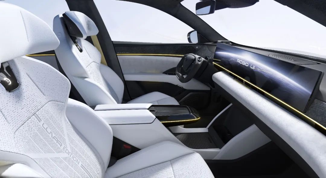内饰部分,ROBO-01探月版没有大的改动。和概念车一样,除了U型方向盘和35.6英寸一体化大屏,座舱内基本没有任何其他元素影响观感,换挡杆、左右拨杆、中控物理按键等常规设计均消失不见。