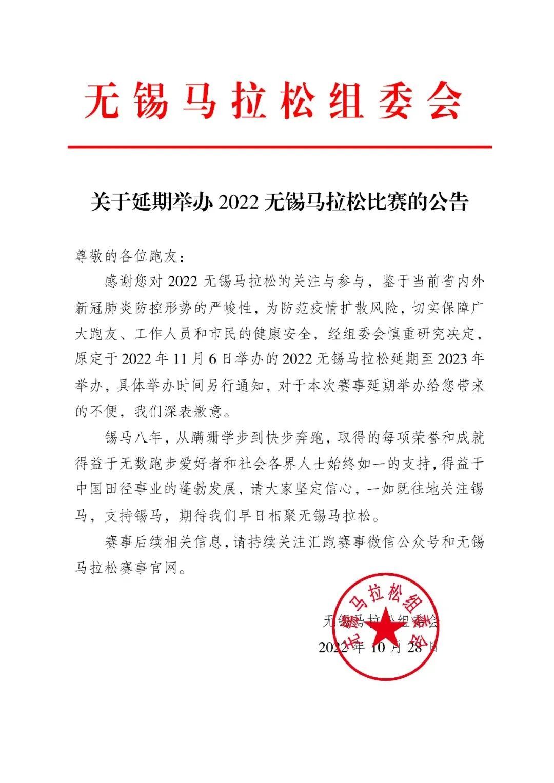 原定于11月6日举办的太原马拉松也在开赛前一周,紧急宣布延期举办,此外西安马拉松、青岛马拉松等多项马拉松赛事也在近日接连宣布延期,无锡马拉松则直接延期至2023年举办,长沙马拉松转为线上办赛,同样定档11月6日的北京马拉松被视为是“村里唯一的希望”。