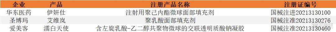 国内已经有三款基于组织再生材料的医美填充类除皱产品获批上市,分别是华东医药旗下的伊妍仕少女针、圣博玛研发的艾维岚童颜针,以及爱美客旗下的濡白天使童颜针。其中,伊妍仕采用的是聚己内酯,艾维岚是聚乳酸,濡白天使是左旋聚乳酸,这些产品在市场上已经有一定份额。其中,伊妍仕已签约合作医院数量超500家,2022年第一季度营收1.57亿元