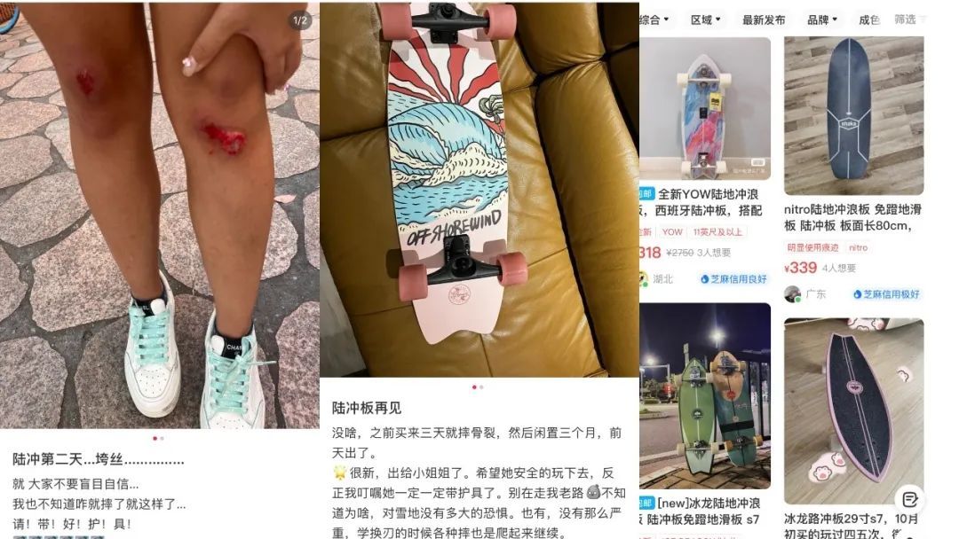 尽管不少人是越挫越勇,为了享受“风一般的自由”而继续陆冲,但也有很多人在看到风险性后入坑即退坑,称“刚入手一个板子的我决定退了”“一小时前被种草,草都种成树了,看完小红书上的各种骨折笔记,根都拔了”“刷到的上一篇笔记是陆冲高手炫技,下一篇就是骨裂,种草即劝退”……