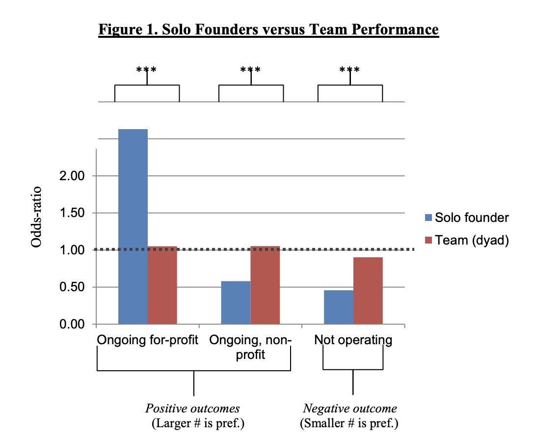 这种说法是有依据的,研究发现,单干成功的几率是联合创始人的两倍!