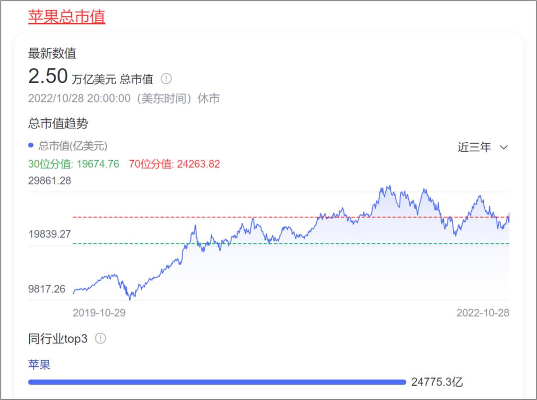 说人话就是:每一个购买 iPhone 14/13/12 的人,都为苹果的市值贡献了一份力量。