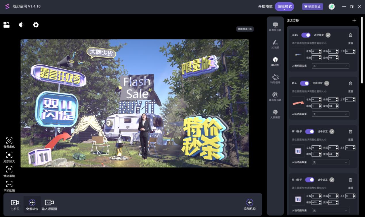 技术层面上,随幻将创作引擎能力融入产品之中,打造了零门槛的3D编辑器,让用户可以根据自己的想法轻松完成个性化的3D创作。内容层面上,随幻打造了丰富的3D素材库,从3D场景模板到3D道具、3D特效,可以满足用户在发布会、展会、论坛、课堂等不同线上活动中的需求。与此同时,足够好用的3D空间编辑能力,也让更多内容创作者加入了线上素材的共建之中,形成可观的UGC创作体系,帮助产品DIY功能的进一步迭代。