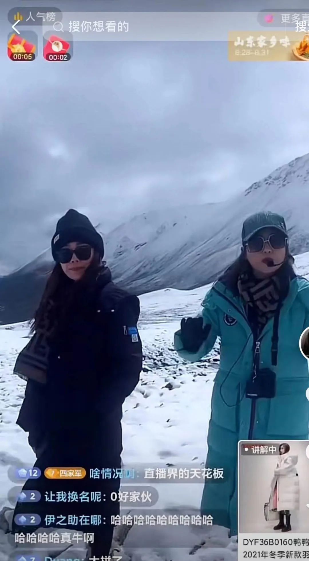 再比如羽绒服品牌鸭鸭,2020年10月因在雪山直播走红,抖音账号一夜涨粉30万。鸭鸭直播间能成功吸引消费者目光的关键在于真实场景:“我们现在在海拔5000米、零下9度的西藏雪山上,在这里直播就是为了给大家实地展示,我们鸭鸭羽绒服的品质,到底抗不抗风,保不保暖。”