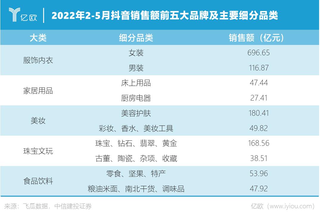 数据显示,服饰内衣、美妆护肤、家居用品,是抖音电商当前卖得最好的品类。