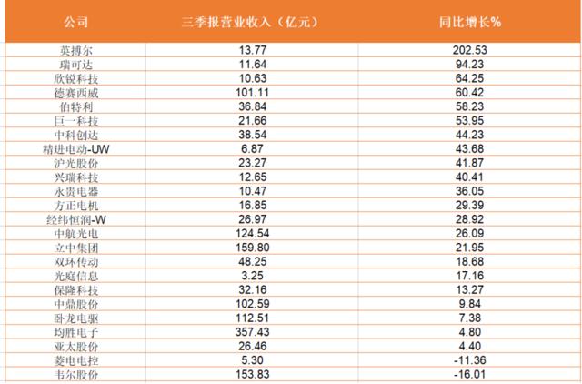 此外,上述提到营业收入增长第一的英博尔的净利润增长也比较快,但是体量还非常小,未来也还要关注财务上的微观的变化。
