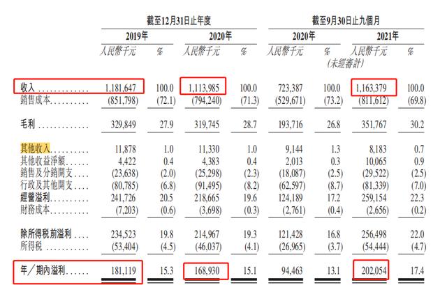 杨国福麻辣烫赚钱吗?招股书显示,2019年、2020年、2021年前9个月,杨国福麻辣烫营收分别是11.82亿元、11.14亿元、11.63亿元;实现利润分别为1.81亿元、1.69亿元、2.02亿元。