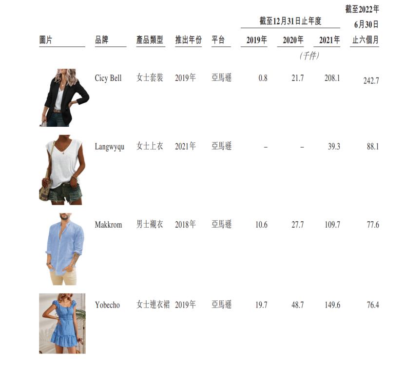 其中, 2017年推出的休闲男装品牌 Runcati,专注棉麻衬衫和男士睡衣等,截止2002年6月,售出41万件;CityBell品牌女装则于2019年推出的,2021年售出20.8万件, Makkrom品牌男士衬衣,在2021年卖出了10.97万件,而Yobecho连衣裙,在同年卖出了14.96万件,等等。