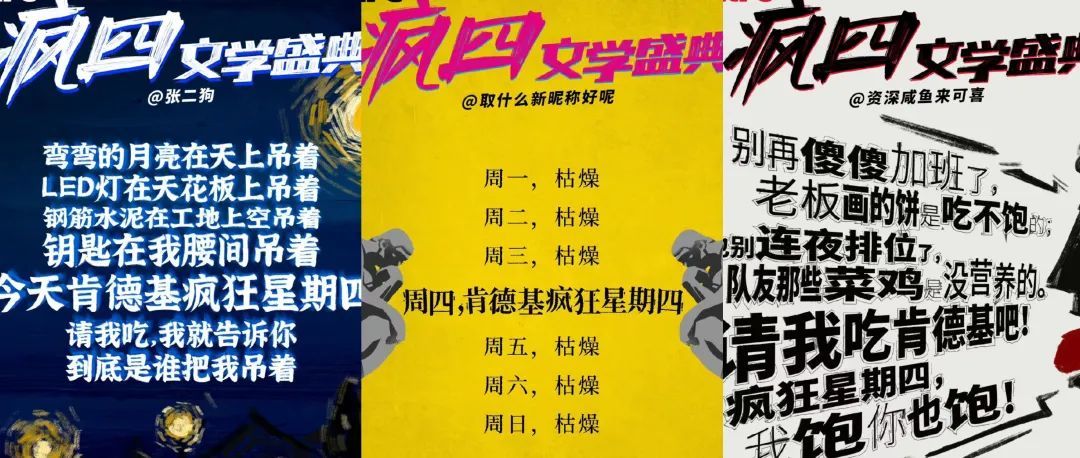 如果你还没有听说过“发疯文学”,那么应该在朋友圈看到过肯德基“疯狂星期四”。