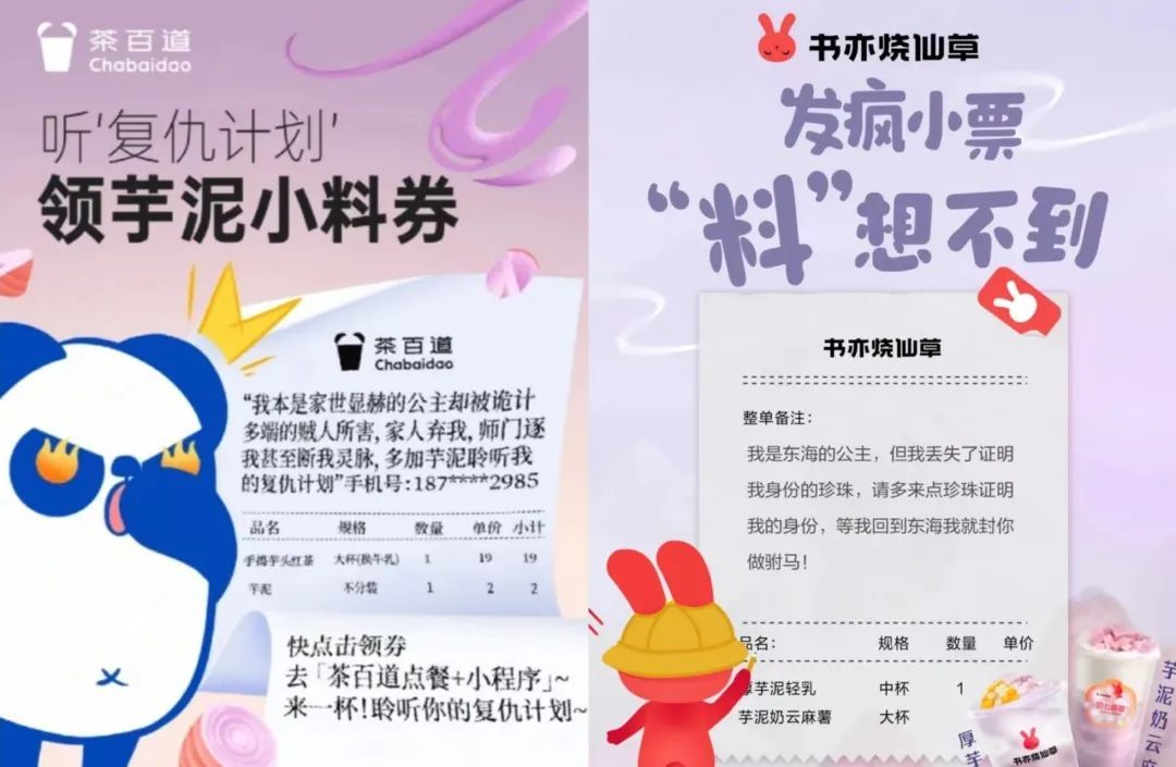 比如奶茶的小票文学里,送小料倾听复仇计划是共性,网友离奇的故事是个性,实现了共创组合。
