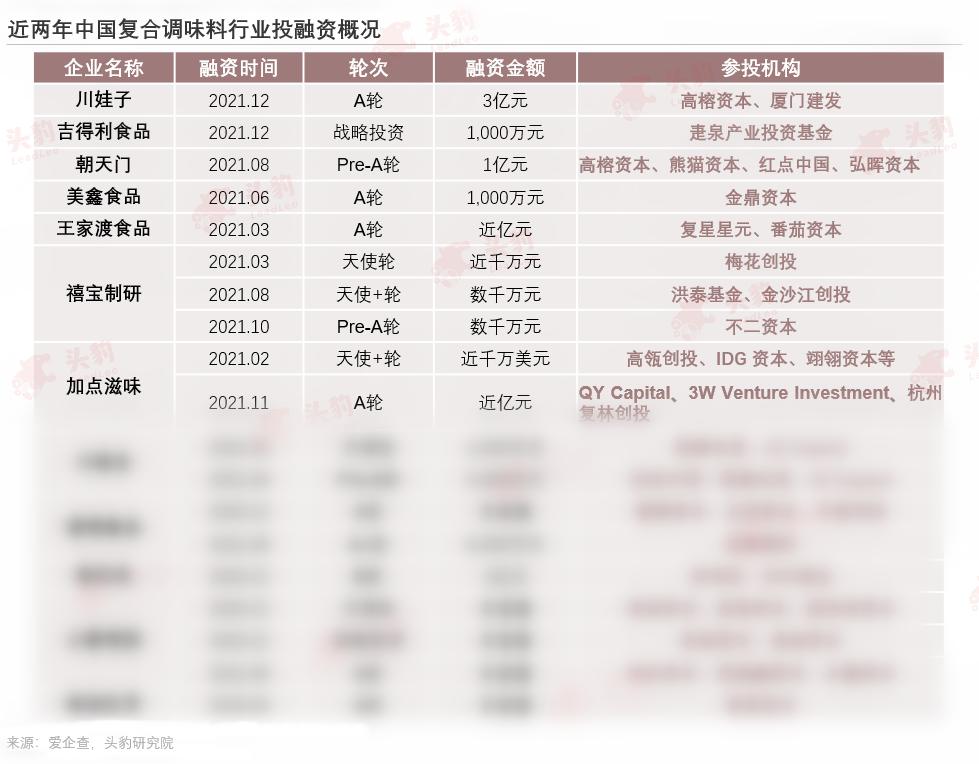 随着中国市场对复合调味料需求的快速上升,复合调味料行业逐步诞生了一批优质的初创企业,这类企业依托创新的产品与销售渠道,快速抢占复合调味料市场,逐步成为推动行业发展的新兴力量。近年来,复合调味料已成为食品饮料领域的投资热门赛道,在新式茶饮、咖啡等业态日益饱和的背景下,布局复合调味料业态成为众多金融资本的重要策略。