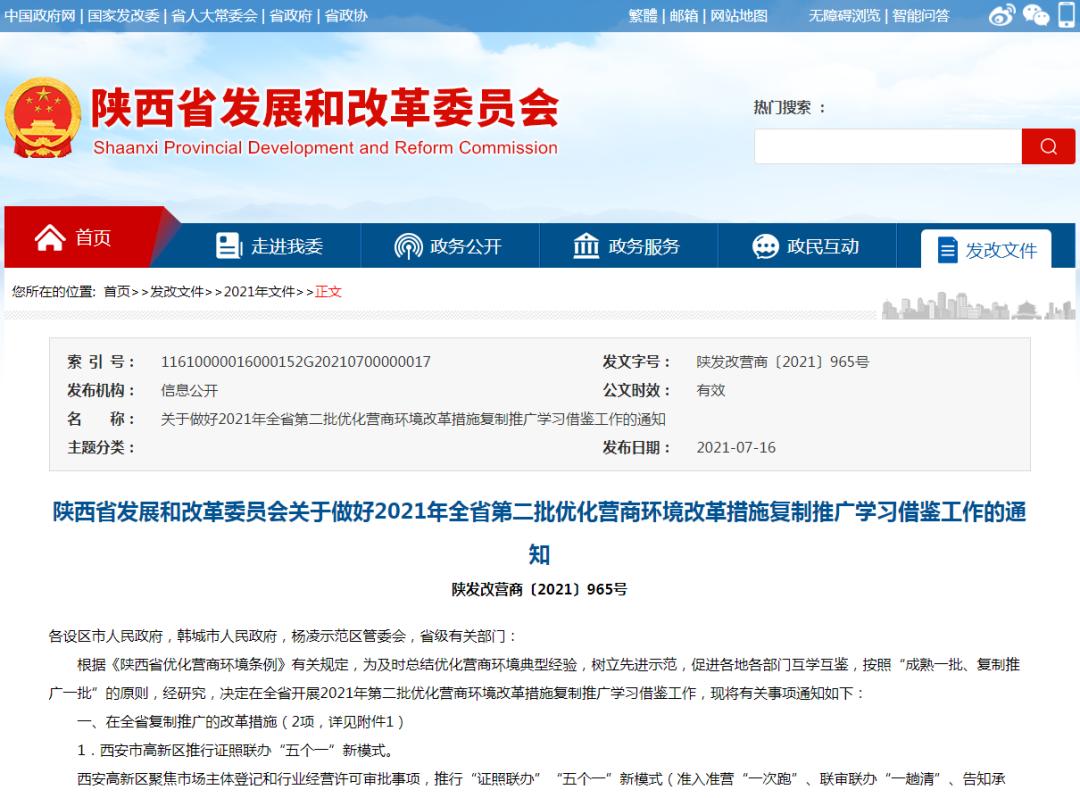 2021年7月,西安高新区探索推行的证照联办“五个一”新模式,被评选为2021年第二批优化营商环境改革经验,在全省复制推广;2022年4月,证照联办“五个一”新模式被评为西安市2021年审批服务“十佳”创新案例。