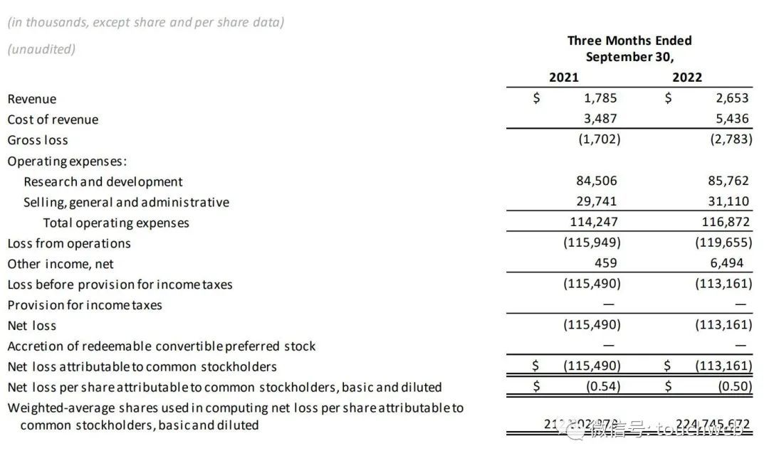 图森未来今日还发布财报,财报显示,图森未来2022年第三季度营收为270万美元,较上年同期增长2%;