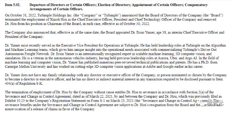 图森未来在声明中这样说:「由于董事会审计委员会在调查后得出结论:有必要更换CEO。」