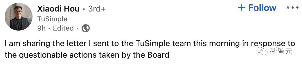 对此,侯晓迪在LinkedIn上发布声明,称董事会解除他职务的决定是「没有理由的」,并发誓要继续为公司奋斗:「让政治阻碍我们共同追求的梦想,这太不公平了」。