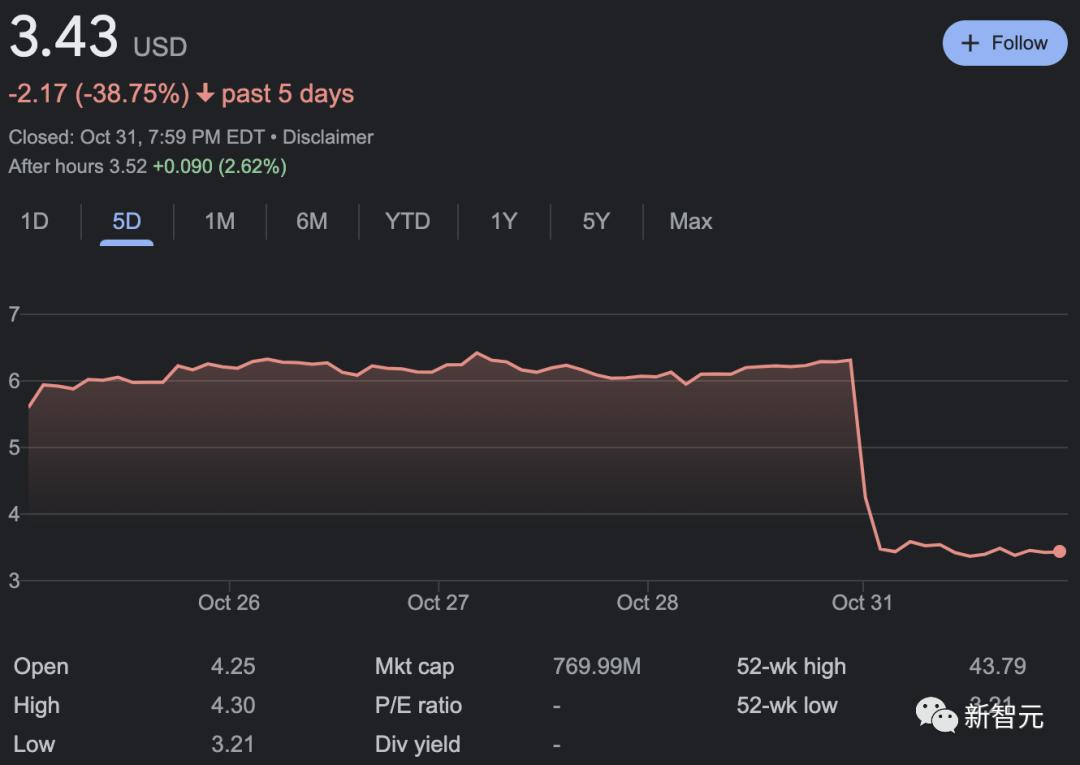 此消息一出,图灵未来的股价立刻下跌将近一半。