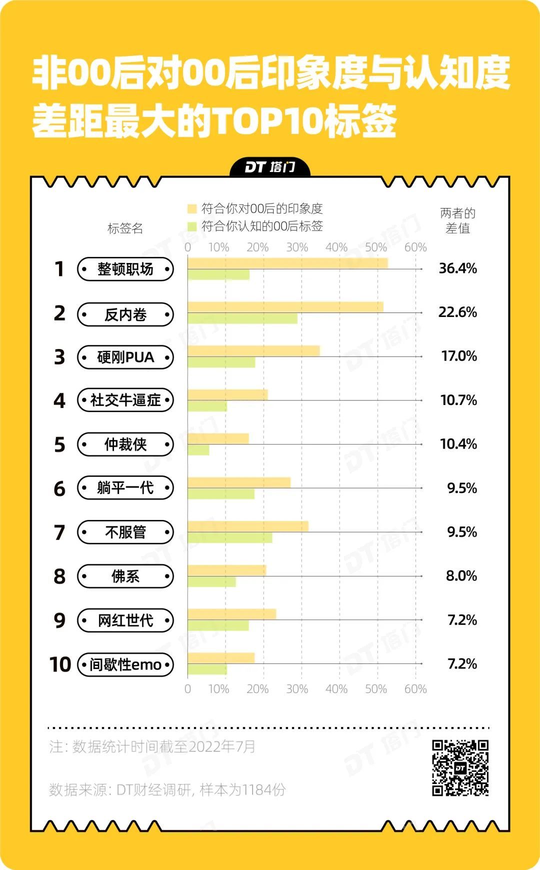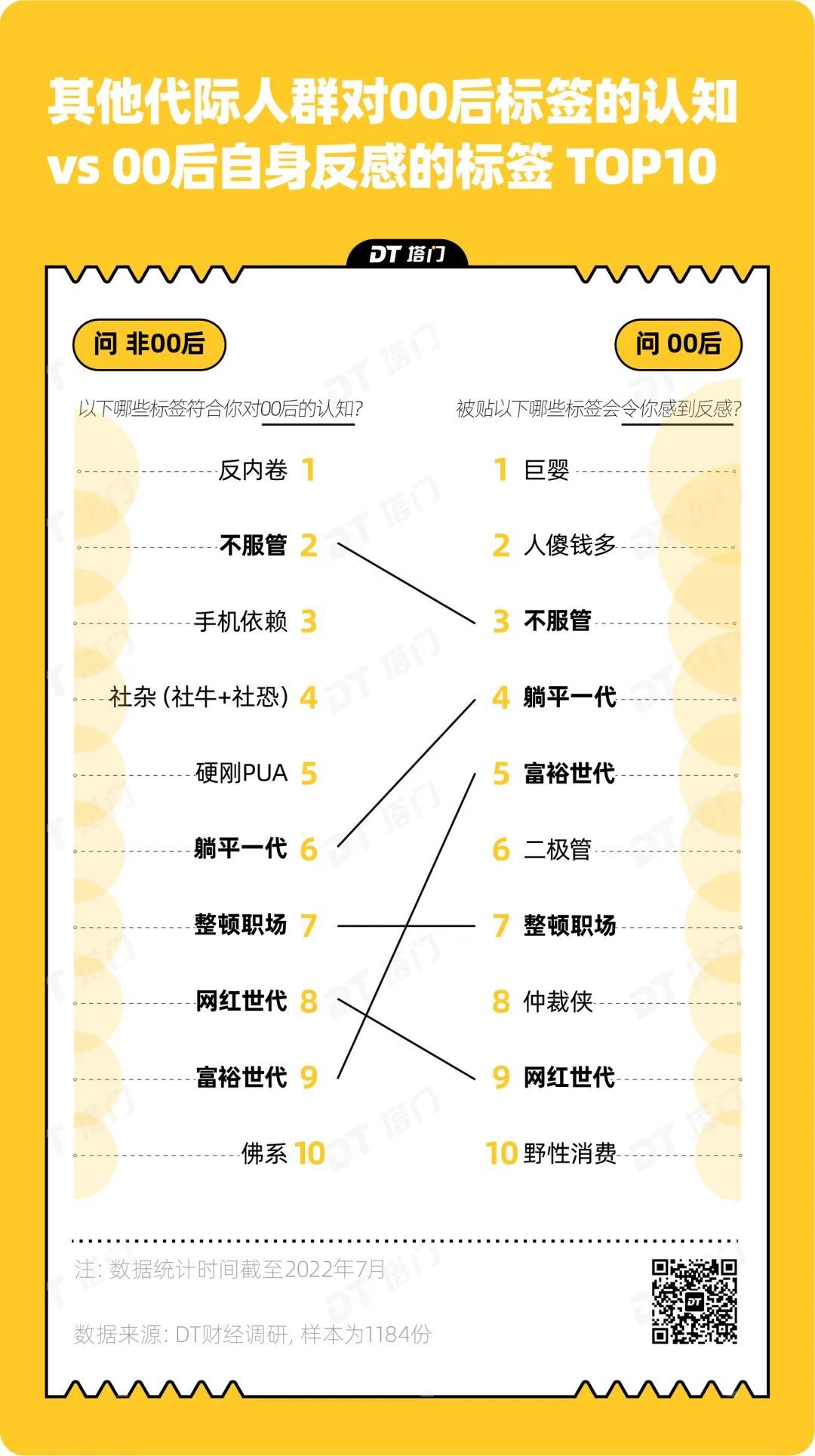 本文来自微信公众号“DT塔门”(ID:DT-Tamen),作者:菜乙己,编辑:唐也钦、张晨阳,可视化:郑舒雅,原标题《00后最反感的标签,两个字》,36氪经授权发布。