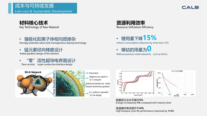 中创新航提到为了解决锰铁锂导电性差、电池阻抗高、极化大的业界难题,综合运用了包覆、掺杂、梯度设计等工艺,具体的技术设计综合运用了实验测试手段和材料仿真技术,包括上述提到的原子分子尺度的第一性原理和电芯尺度的电化学仿真技术,比如在设计初期可以用于评估掺杂不同过渡金属元素之后电极材料的导电性能提高多少、内阻解决程度能有多大。