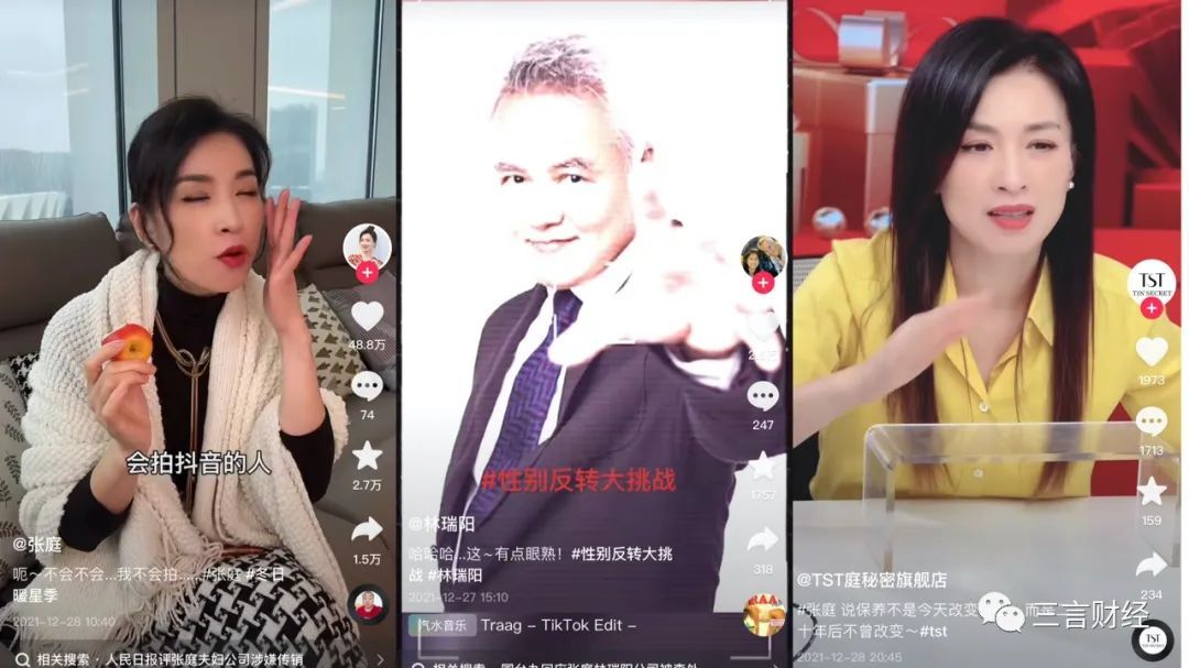 目前张庭、林瑞阳以及TST庭秘密旗舰店的抖音官方账号的最后一条视频,都停留在2021年12月份。